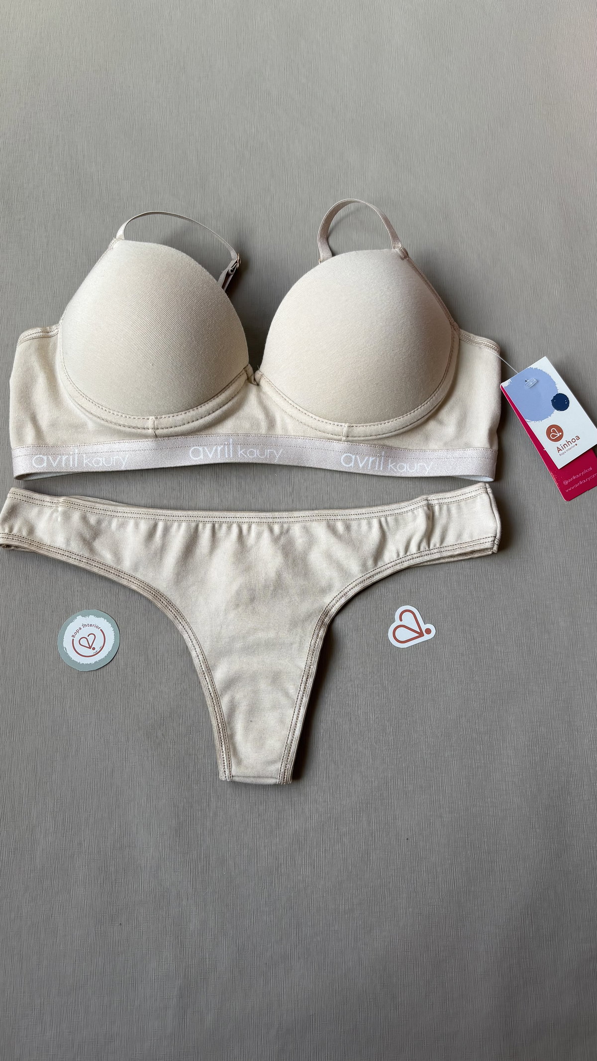Conjunto de algodón suave y elástico personalizado, ideal para todos los días. Su taza soft con push up realza naturalmente el busto y brinda un sostén cómodo sin perder suavidad. El calce es firme y delicado, pensado para acompañar el movimiento y ofrecer una sensación liviana durante todo el día. La bombacha combina algodón de excelente calidad con un diseño cómodo que no marca y se adapta al cuerpo. Un conjunto versátil, femenino y perfecto para uso diario. Talles: 85 al 100. Cuidados: lavar a mano o en ciclo suave con agua fría, no usar blanqueadores y secar a la sombra.