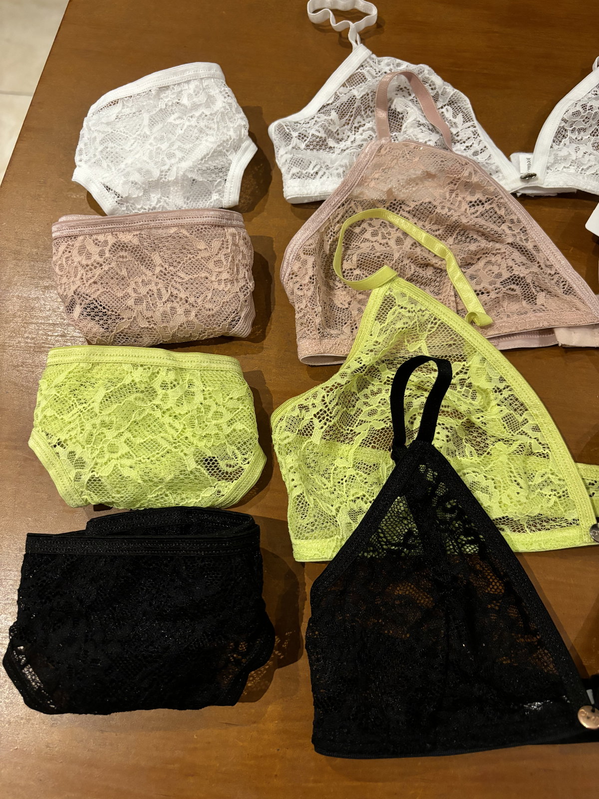 Conjunto delicado y femenino confeccionado en puntilla suave y elastizada. El corpiño estilo bralette triangulito, sin taza y sin aro, ofrece un sostén liviano y natural, ideal para quienes prefieren comodidad y libertad de movimiento sin perder estética. Su diseño realza el escote de manera sutil y se adapta al cuerpo gracias a la elasticidad de la puntilla. La bombacha colaless de puntilla acompaña el conjunto con un calce cómodo, suave y pensado para no marcar la piel. Una opción fresca, liviana y perfecta para uso diario o para lucir debajo de prendas delicadas. Cuidados: lavar a mano o en ciclo suave con agua fría, no usar blanqueadores y secar a la sombra.