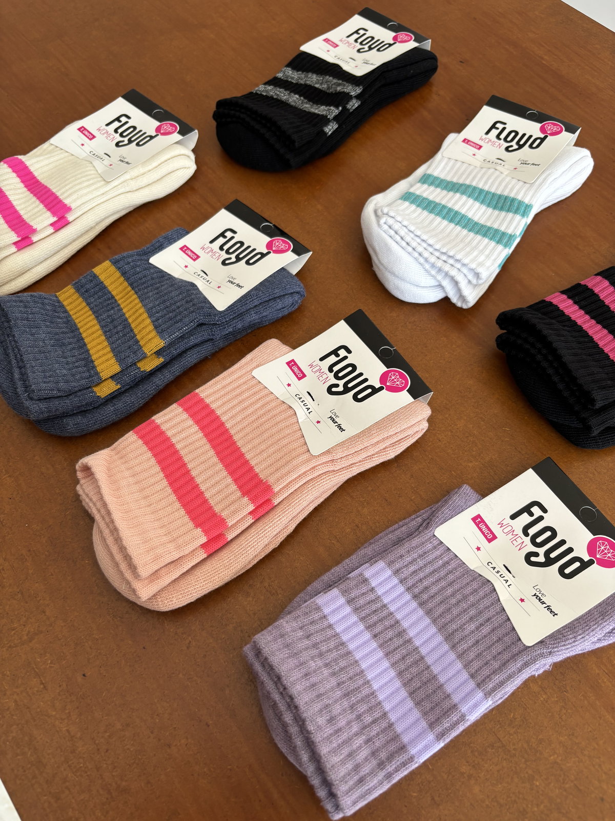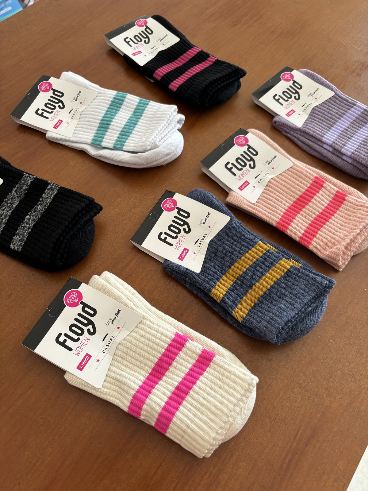 Medias tenis con rayas, de algodón con plantilla de toalla para absorber la transpiración, son suaves y respirables, ideales para el uso diario. Su tejido cómodo y elástico se adapta al pie sin ajustar y ofrece una sensación liviana durante todo el día. Son resistentes, frescas y perfectas para acompañar cualquier calzado.