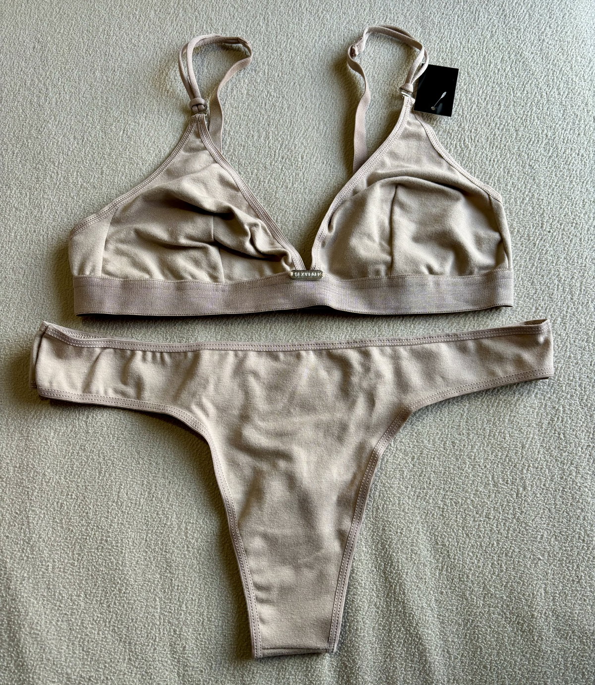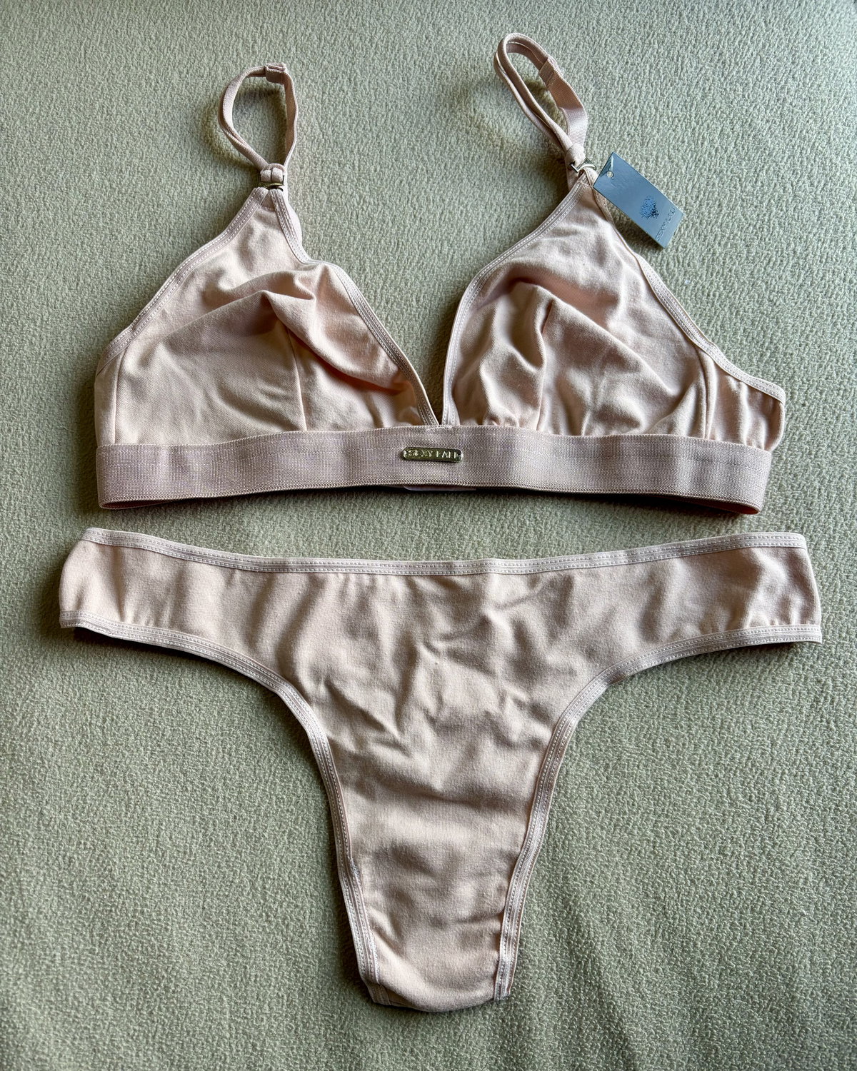 El corpiño triangulito ofrece un calce natural, sin aro, con una sensación fresca y liviana que acompaña la forma del busto sin ajustar.