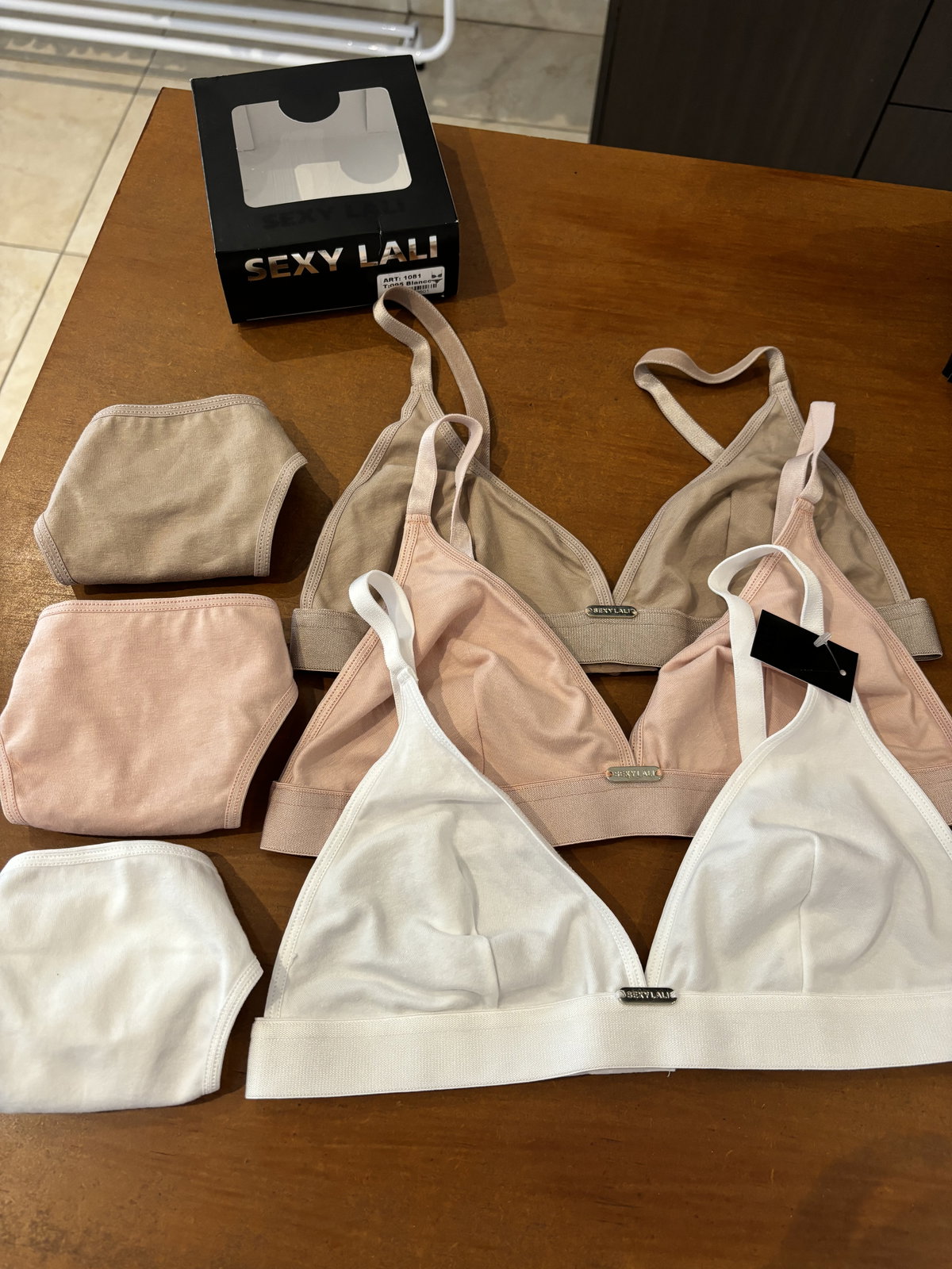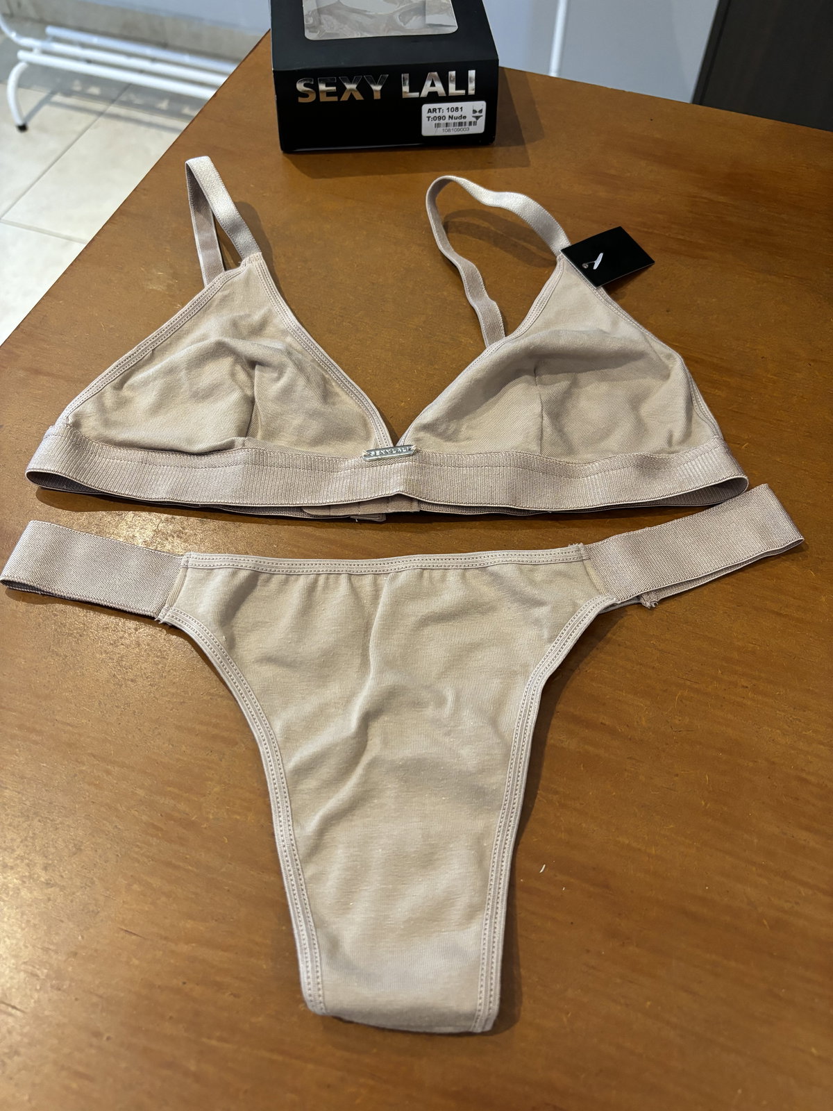 El corpiño triangulito con elástico ofrece un calce natural, sin aro, con una sensación fresca y liviana que acompaña la forma del busto sin ajustar.