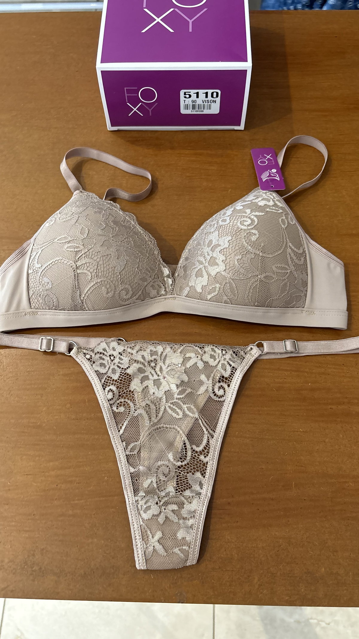 Conjunto triangulito taza soft con puntilla y colaless "Foxy" Art.5110