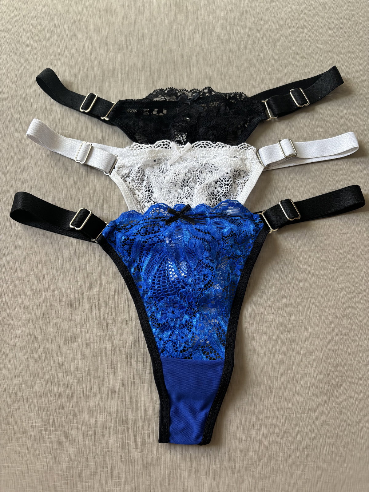 Colaless regulable de puntilla con elástico ancho. Arandelas con baño hipo alergénico Pack x3 talle único (38 a 44/46 aprox)