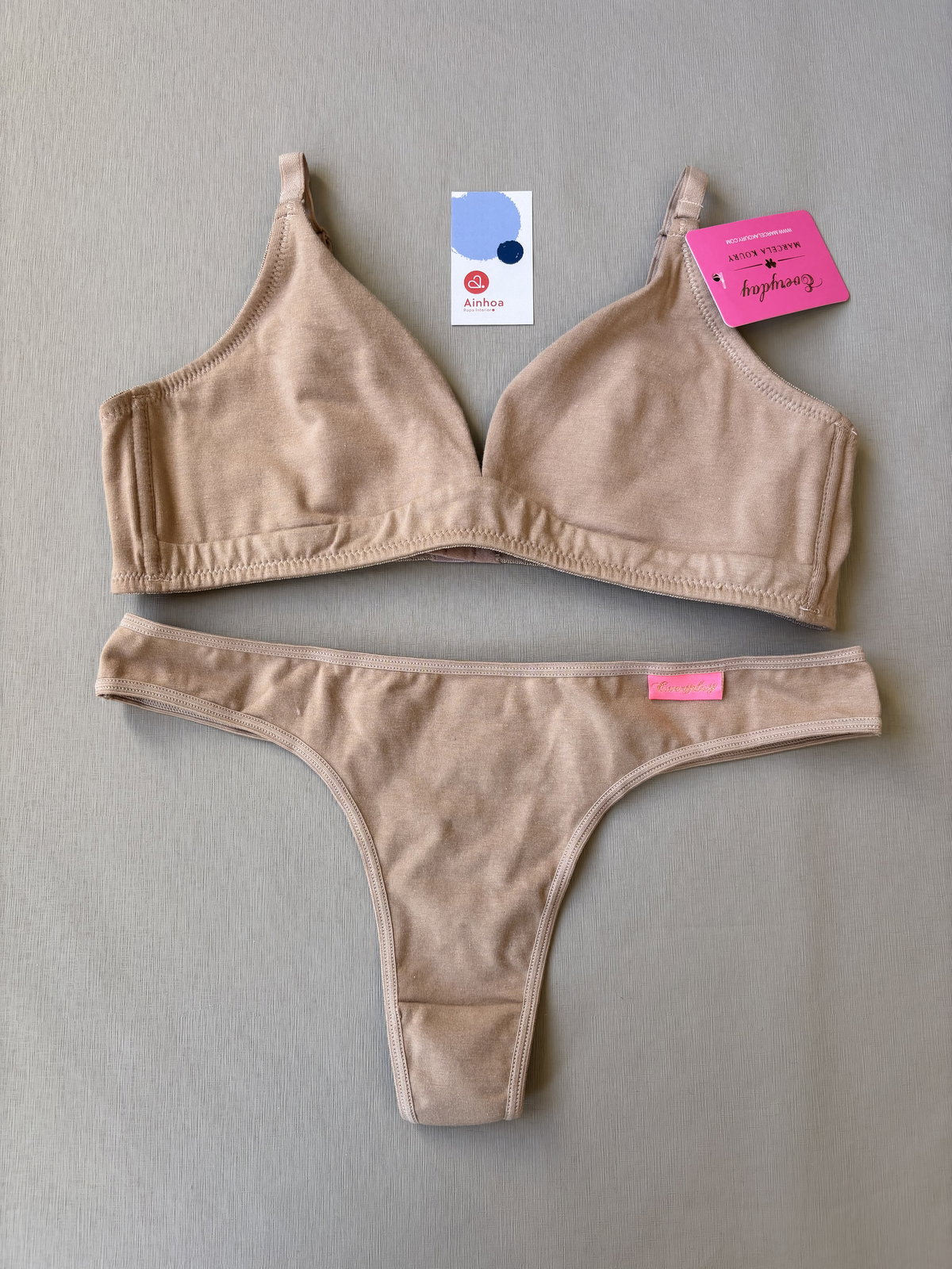 Incluye corpiño triángulo sin aro y bombacha colaless, brindando un calce liviano y natural que se adapta al cuerpo.
