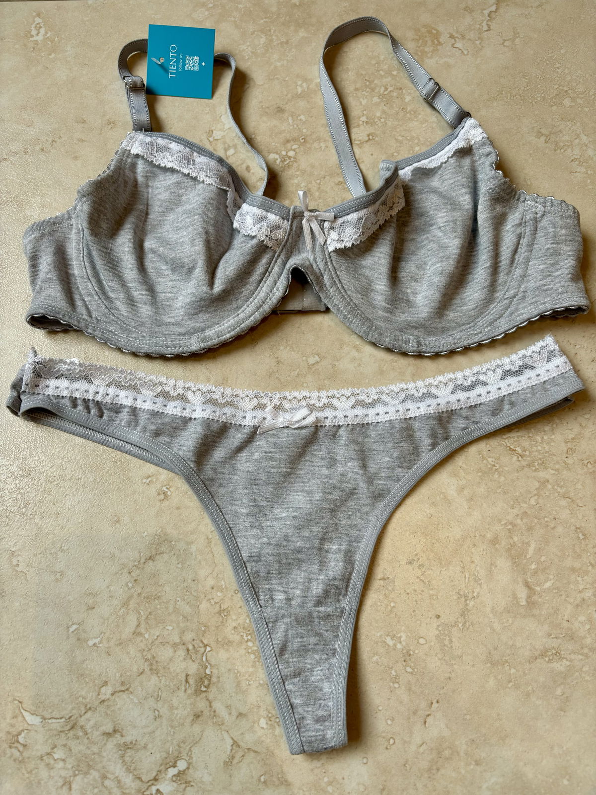 El corpiño con aro ofrece mayor sujeción, manteniendo un calce natural y confortable. La bombacha colaless se adapta al cuerpo sin marcar, perfecta para el uso diario.