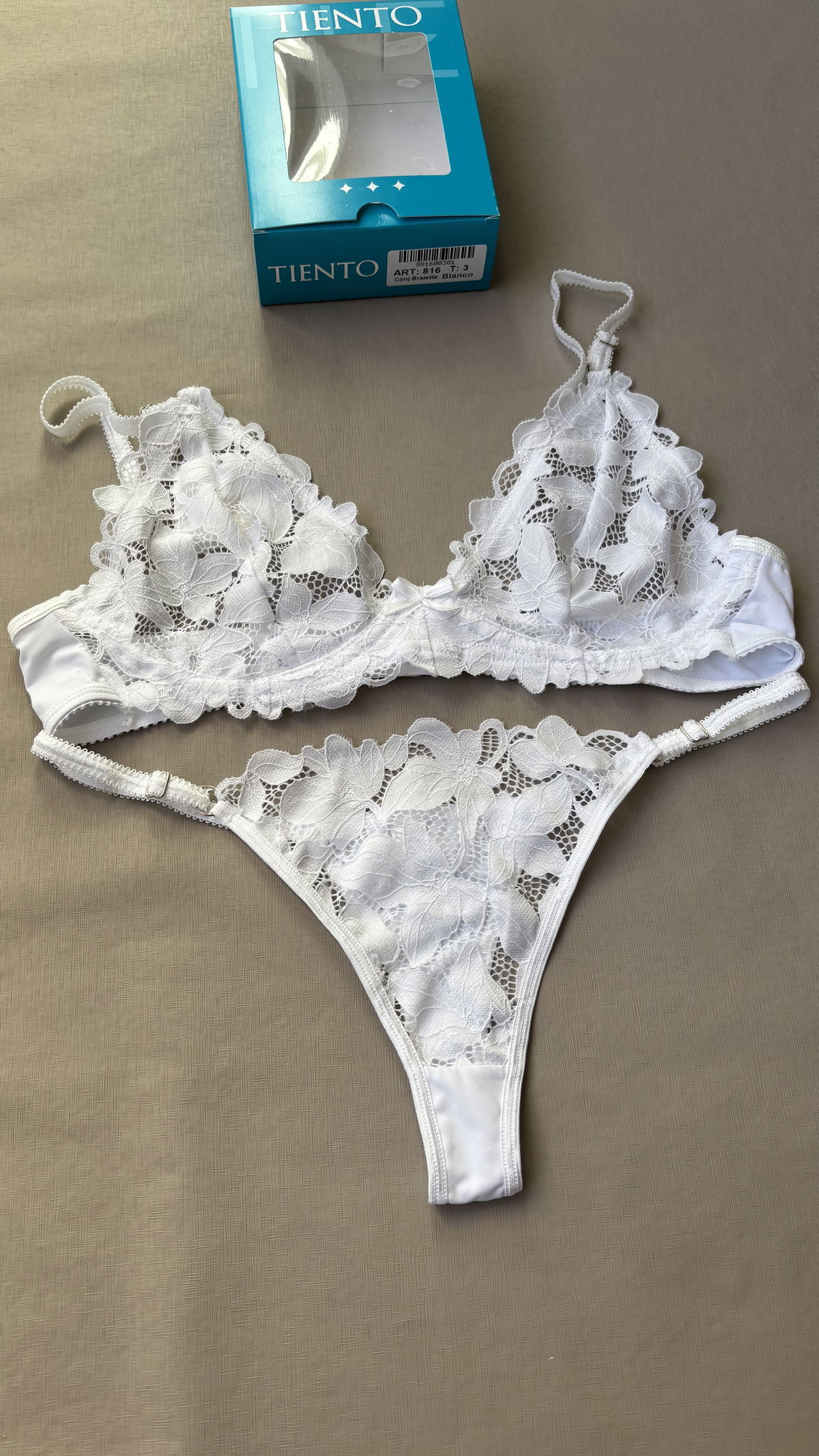 Conjunto delicado y cómodo, confeccionado en puntilla suave y elastizada.