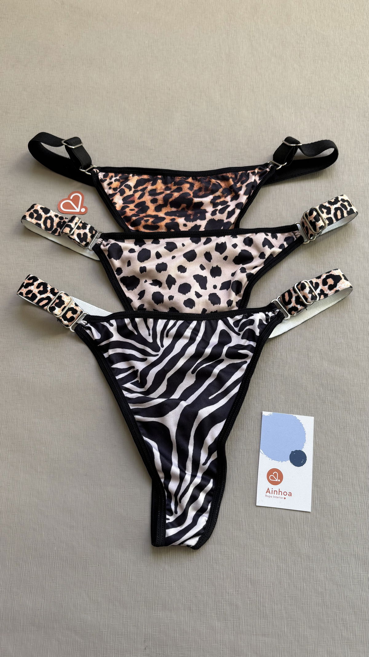 Bombacha colaless regulable, cómoda y suave al tacto Confeccionada en microfibra estampada animal print con bretel ancho, ofrece un calce perfecto y se adapta a tu cuerpo sin marcar.