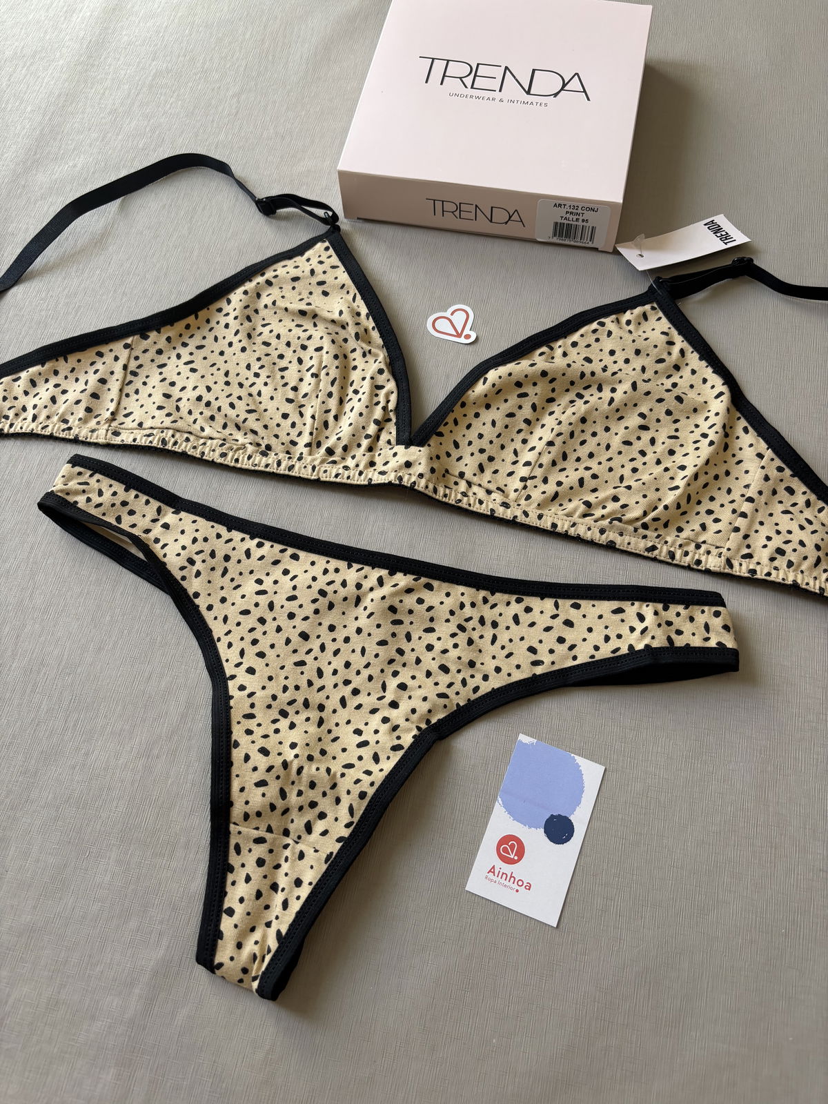 Conjunto básico y cómodo confeccionado en algodón y lycra animal print, pensado para brindar seguridad y confort durante todo el día. El corpiño cuenta con gancho en la espalda asegurando durabilidad y comodidad.