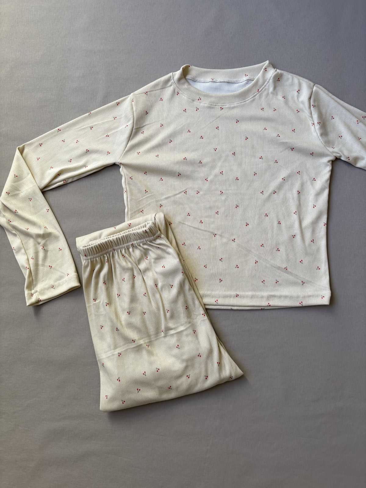 Incluye remera de manga larga y pantalón largo tiro alto, brindando abrigo liviano y un calce cómodo que se adapta al cuerpo.